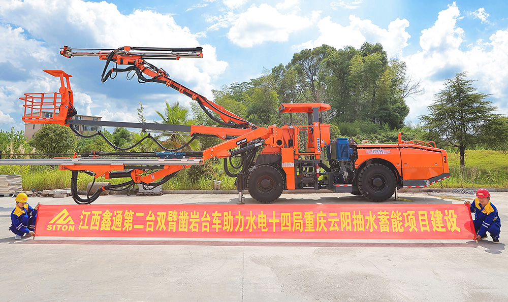 鑫通雙臂鑿巖臺(tái)車(chē)助力水電十四局重慶云陽(yáng)抽水蓄···