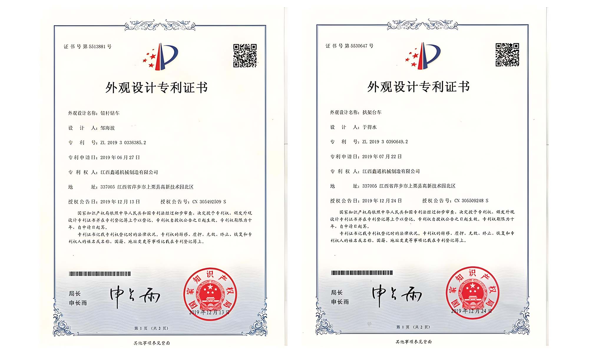 外觀設(shè)計(jì)專(zhuān)利證書(shū)