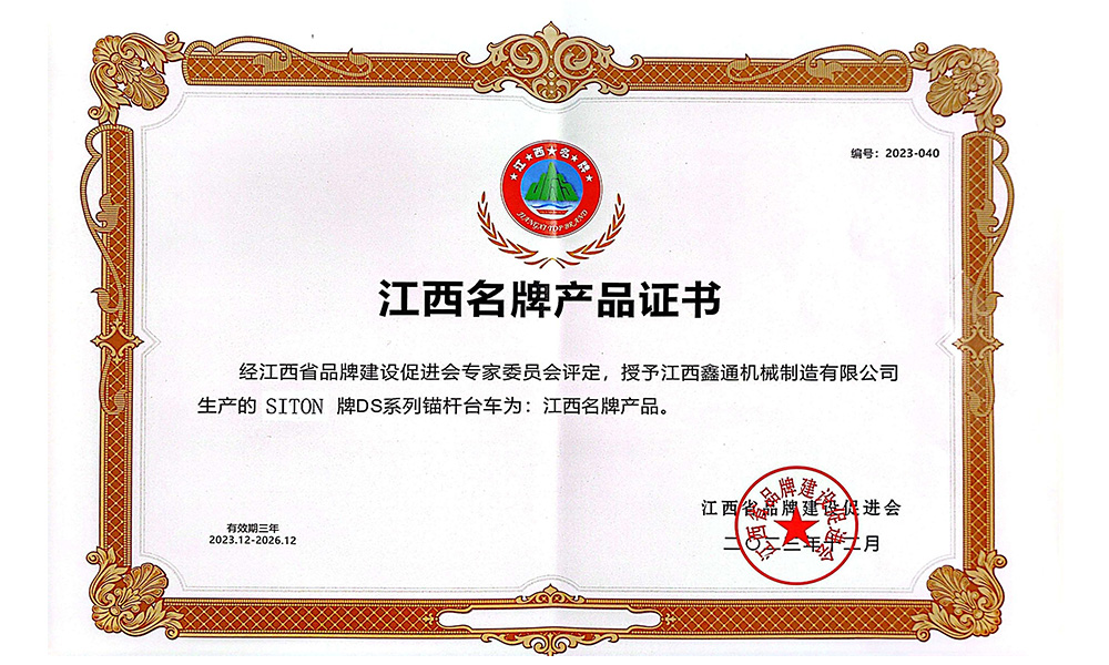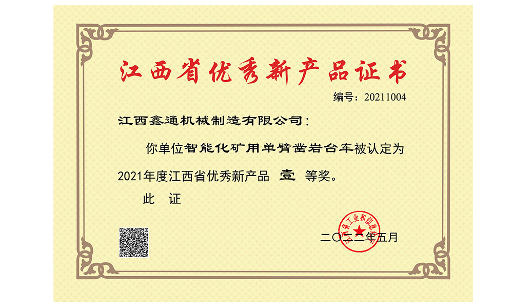 智能化礦用單臂鑿巖臺(tái)車(chē)榮譽(yù)證書(shū)